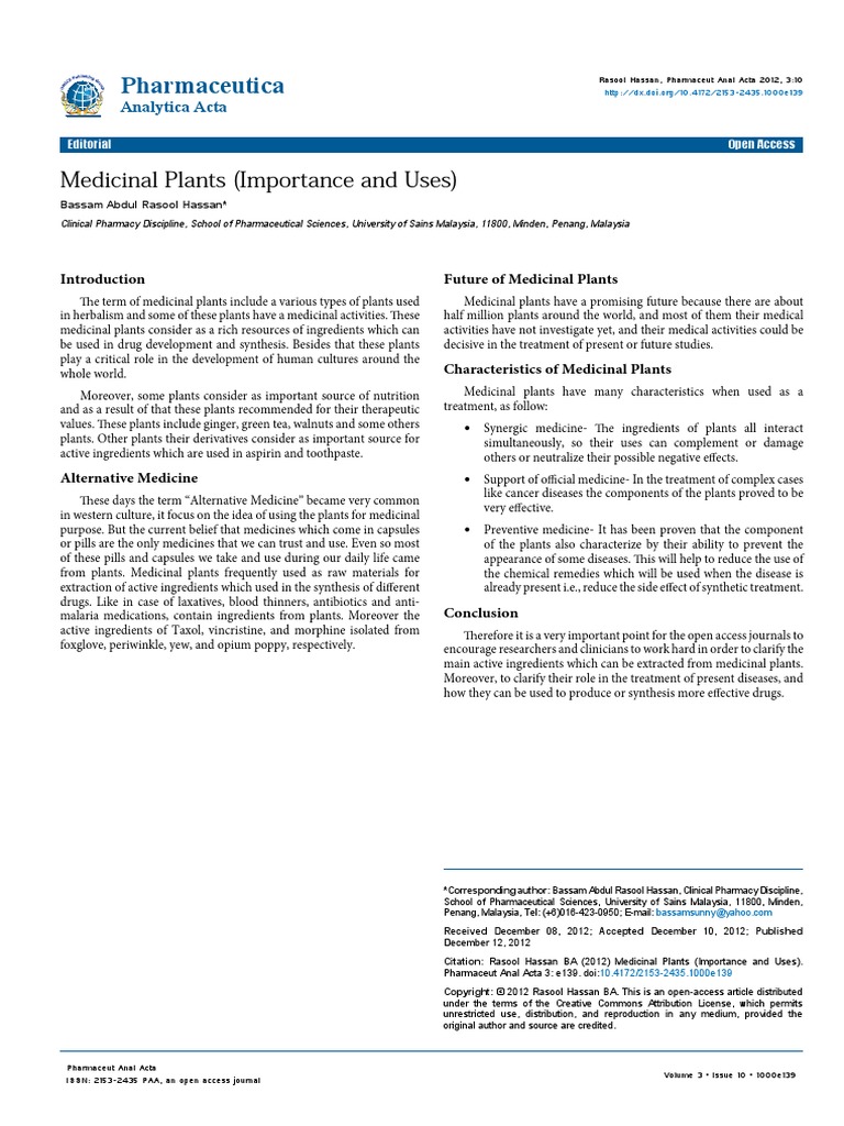 Medicinal Plants Importance And Uses 2153 2435 1000e139